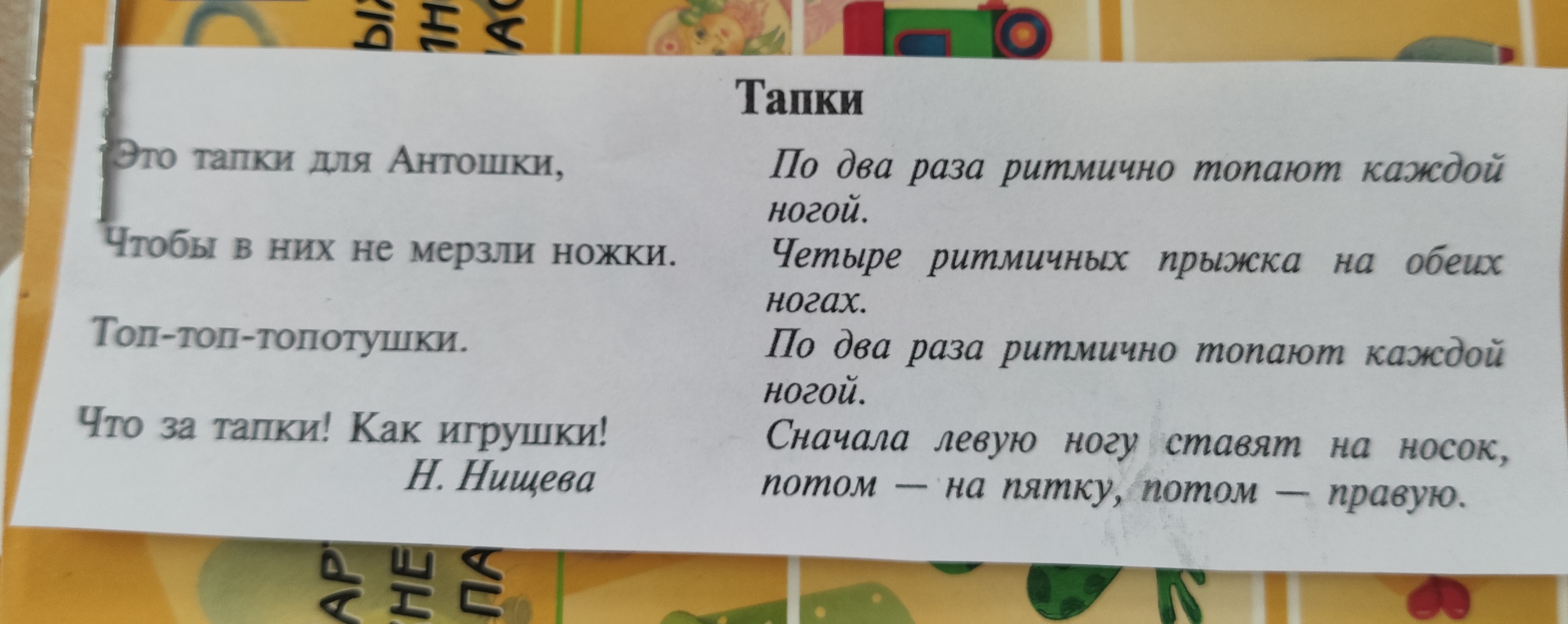 Лексическая тема ОБУВЬ. Упражнение на координацию речи с движениями " Тапки"